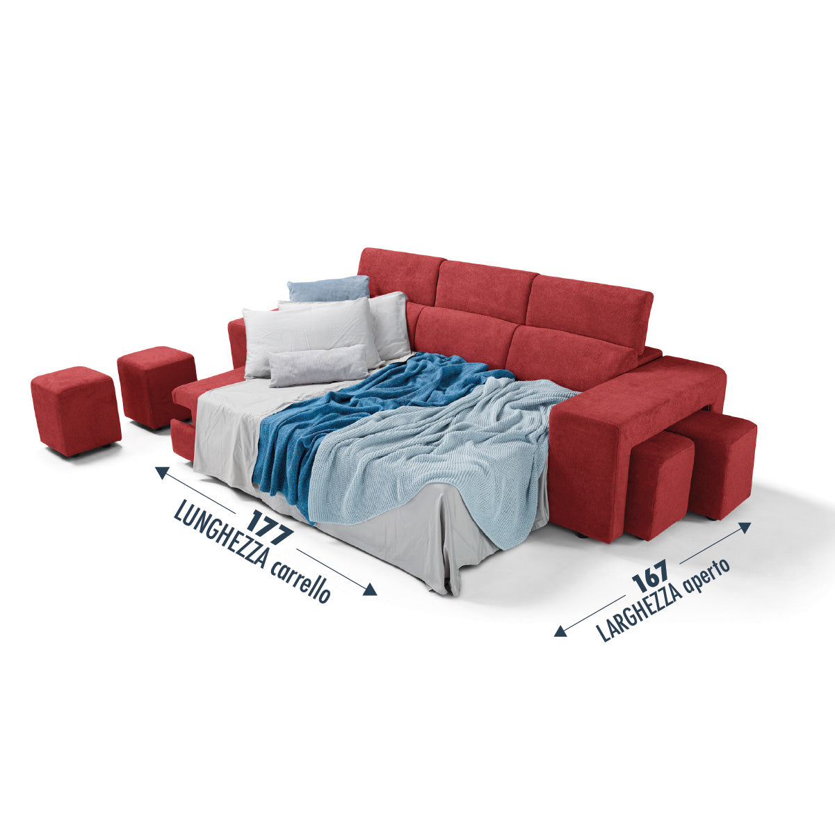The fabric is soft and enveloping to the touch, easily washable and, thanks to an innovative treatment, water-repellent and stain-resistant .