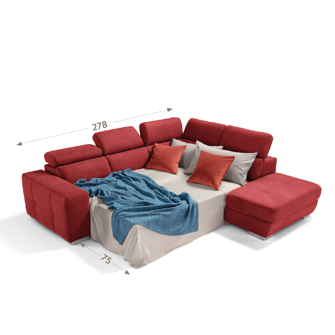 Martina by Komodo is the sofa with an innovative and contemporary design. It is equipped with 5 manually adjustable headrests designed for maximum comfort of the cervical area and a removable trolley that transforms it in a few seconds in a practical bed. Equipped with large armrests that make the seat even more engaging, it has a decoration on the side that makes it even richer in character.