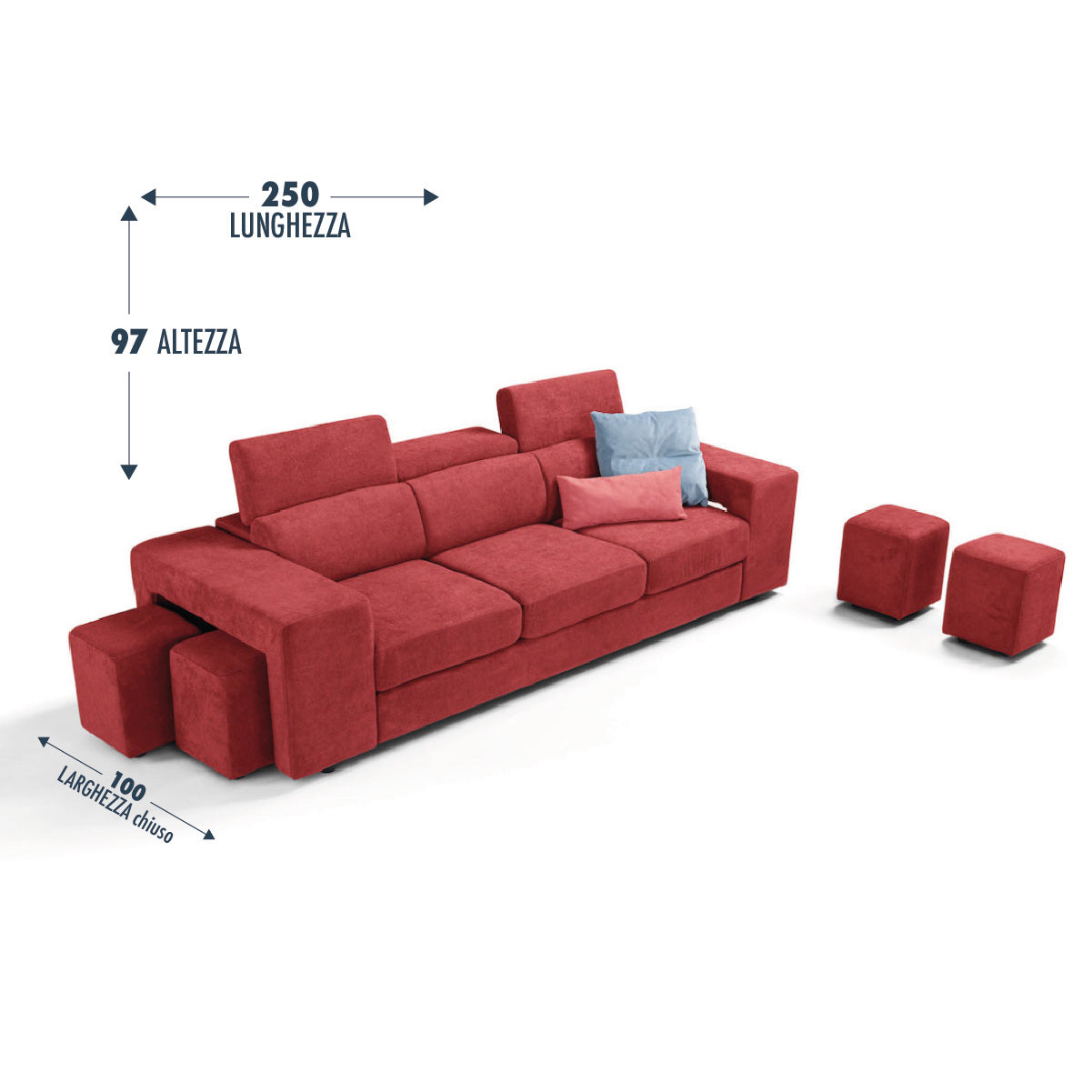 Le tissu est doux et enveloppant au toucher, facile à laver et, grâce à un traitement innovant, déperlant . Le canapé est fabriqué en Italie par des artisans experts .