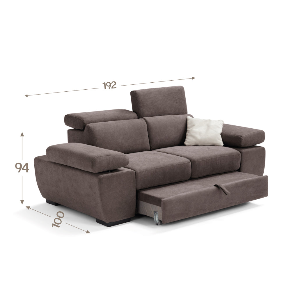 Canapé linéaire FABIOLA 2 places - Ouverture de lit KOMODO et accoudoir réglable