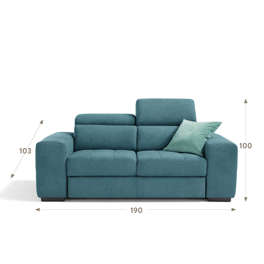 Martina by Komodo est le canapé au design innovant et contemporain. Il est équipé de 2 appuis-tête réglables manuellement conçus pour un confort maximal au niveau des cervicales et d'un chariot extractible qui le transforme en un lit pratique en quelques secondes seulement . Equipé de grands accoudoirs qui rendent l'assise encore plus attrayante, il présente une décoration sur le côté qui lui donne encore plus de caractère.
